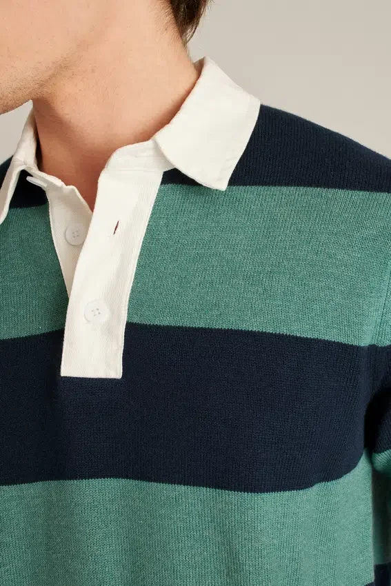 Una camisa de manga larga híbrida entre suéter y polo para hombre, diseñada con detalles y combinaciones de colores clásicos del rugby. Además, un toque de calidez gracias al suave hilo de algodón y la lana.