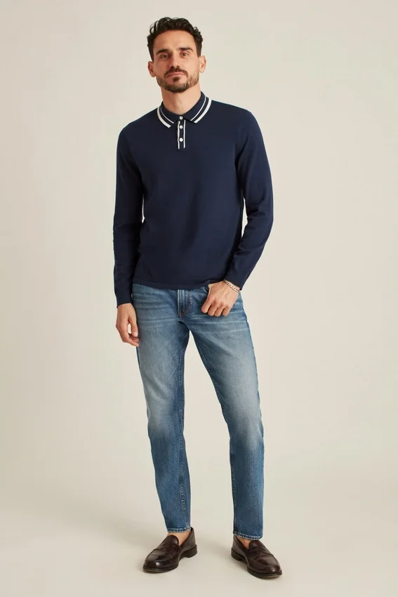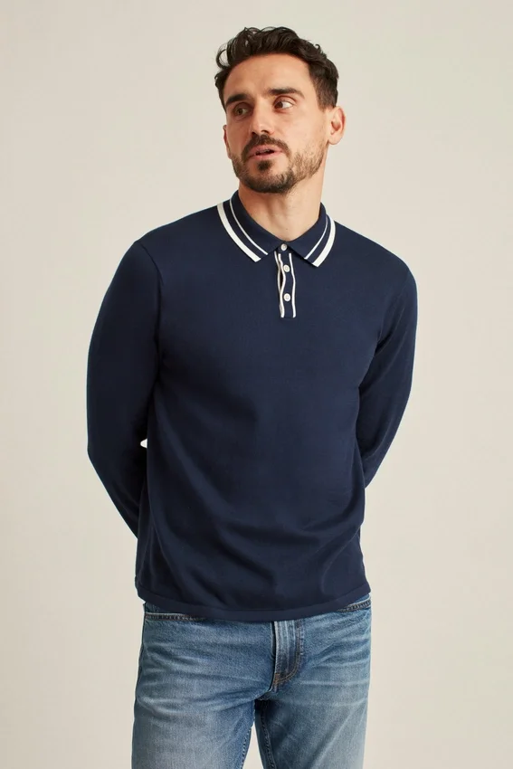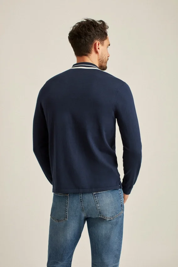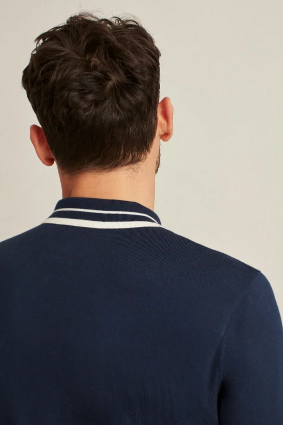 Un híbrido entre suéter y polo diseñado con un toque retro. Le da un toque elegante a tu estilo informal.