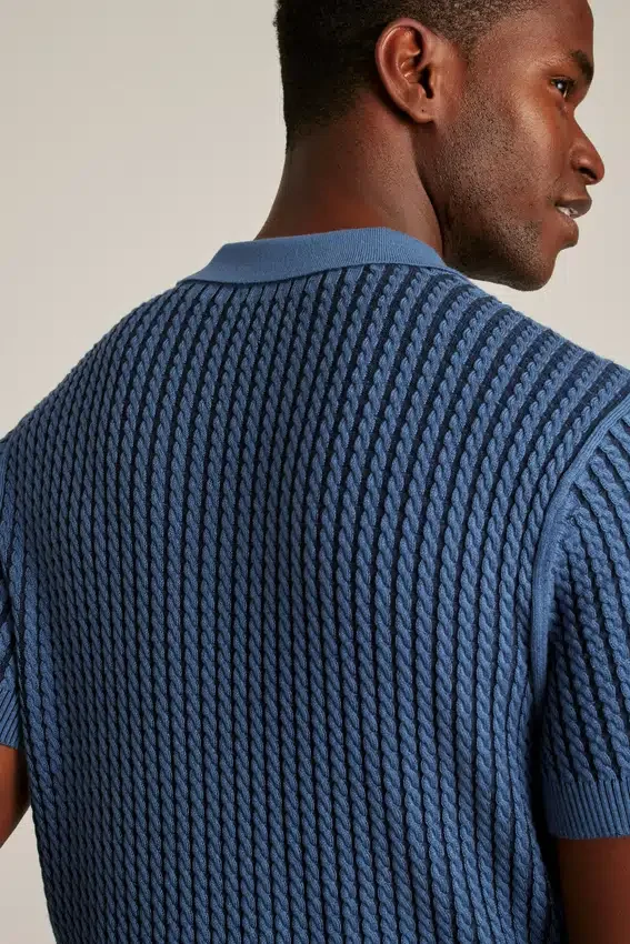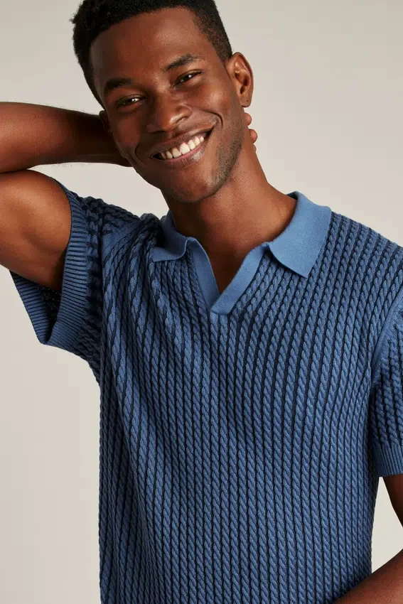 Tu suéter favorito para hombre, con estilo de polo y un toque vintage combinado con un aire business casual. Además, cuenta con un punto trenzado que le da un aire sofisticado.