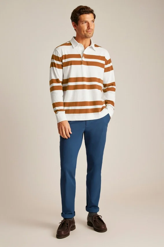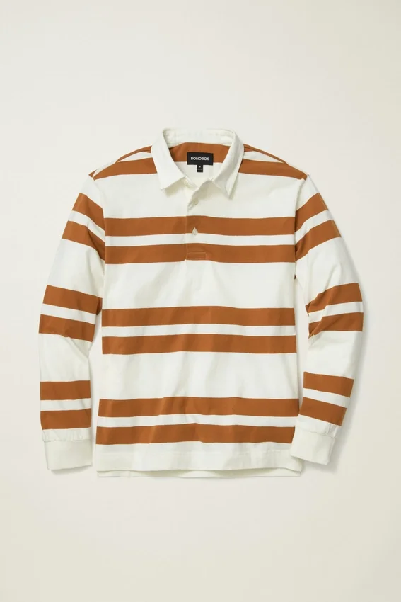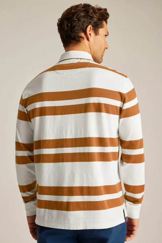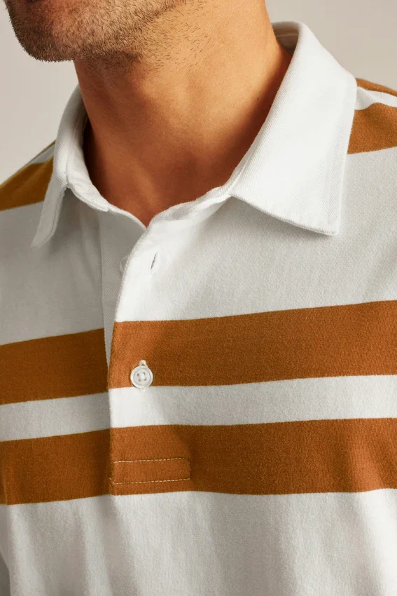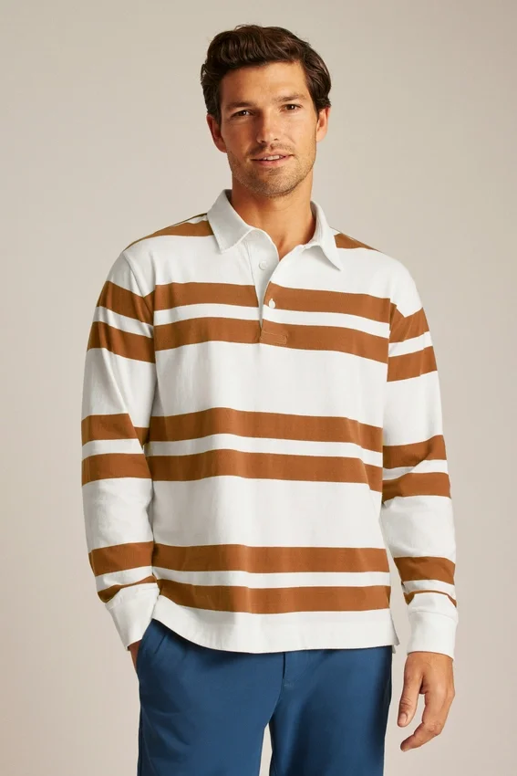 El polo de rugby de peso medio es perfecto para los días más frescos, con un tejido de algodón suave y transpirable y un diseño de rayas discontinuas que le da un toque elegante a un estilo clásico.