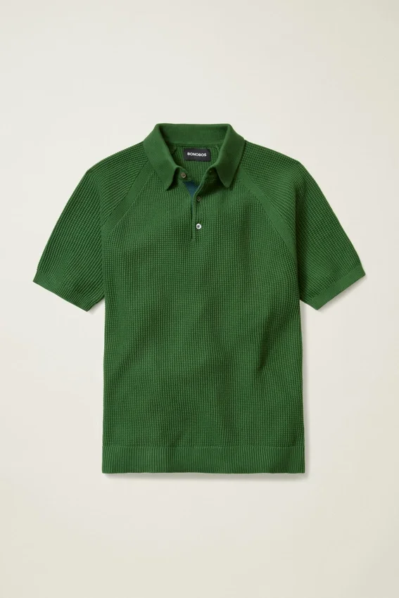Tomamos tu suéter favorito y lo cortamos como un polo. Estilo de inspiración vintage con un toque casual.