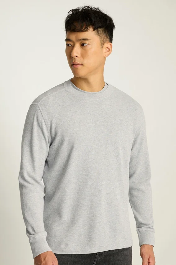 La suavidad y comodidad del algodón con textura de gofre, todo en una atractiva camiseta de cuello redondo.