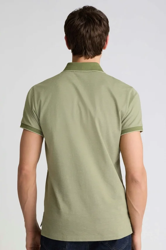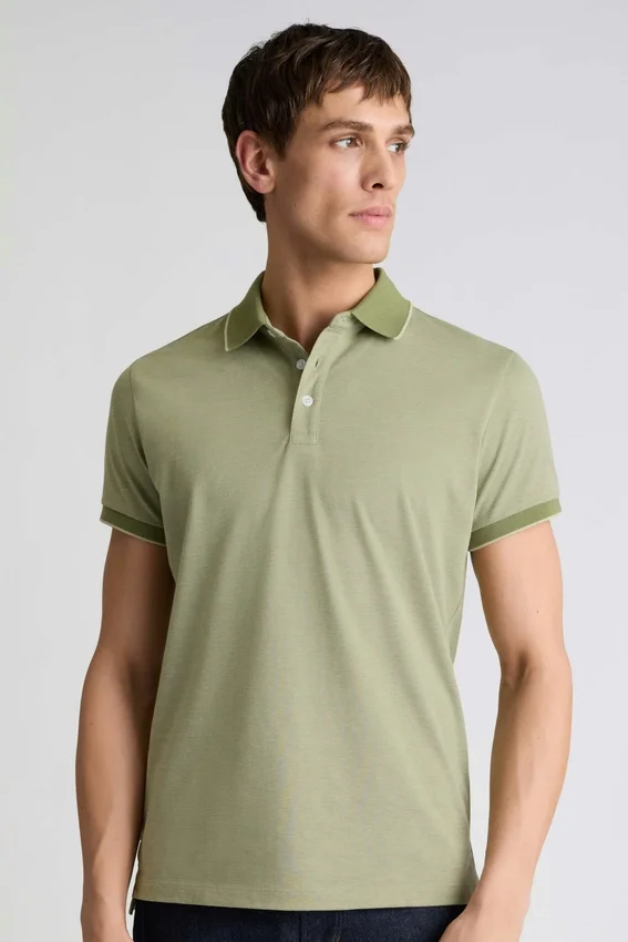 Algodón Pima elástico con textura piqué y ribetes de punto plano | Acabado antiolor, antimanchas y que absorbe la humedad