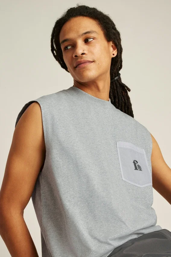 La camiseta Muscle Tee de Fielder, lista para la calle, está confeccionada con jersey de algodón de peso pesado y cuenta con un bolsillo en el pecho de nailon ripstop que le da un toque moderno.