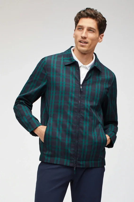 La chaqueta cortavientos perfecta para jugar al Golf en cualquier condición climática. Cuadros verdes y azul marino, cremallera central frontal visible y bolsillos delanteros. Slim Fit. ¡Envío gratis!