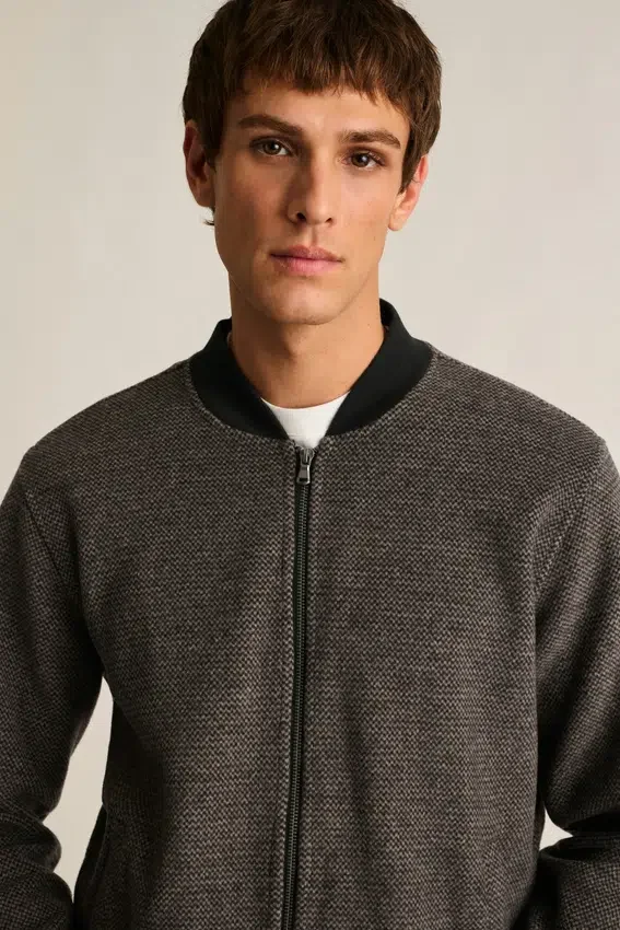 Combina el estilo clásico de la bomber con la calidez y la comodidad de un suéter que se puede usar en capas.