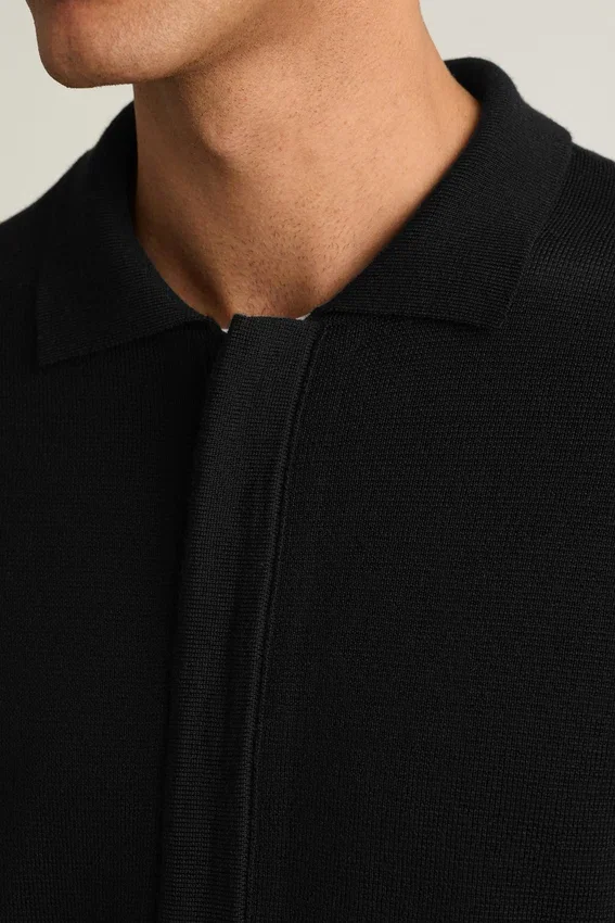 Cuello de camisa | Cremallera frontal completa | La costura milanesa aporta estructura y peso | Absorbe la humedad de forma natural y regula la temperatura | Transpirable y resistente a los olores