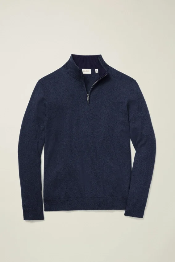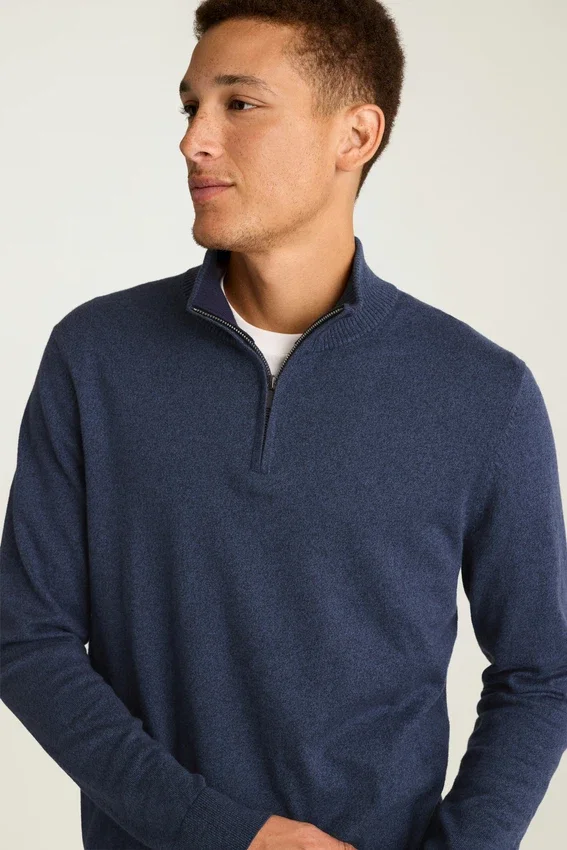 Camiseta de algodón y cachemira lavable con cremallera de un cuarto