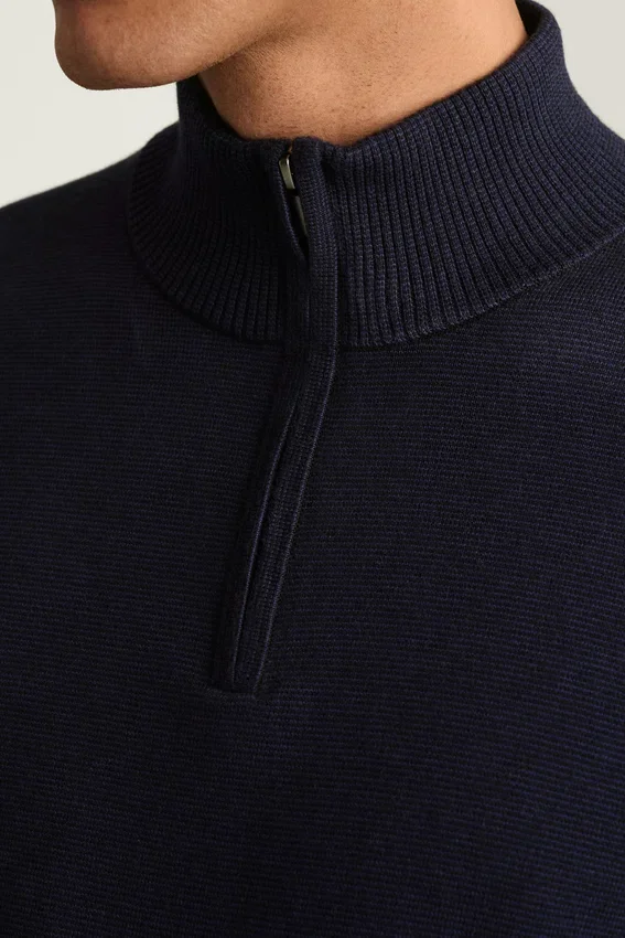 Camiseta de algodón y cachemira lavable con cremallera de un cuarto