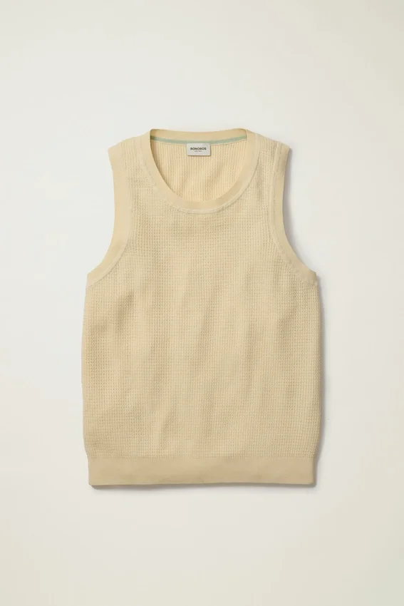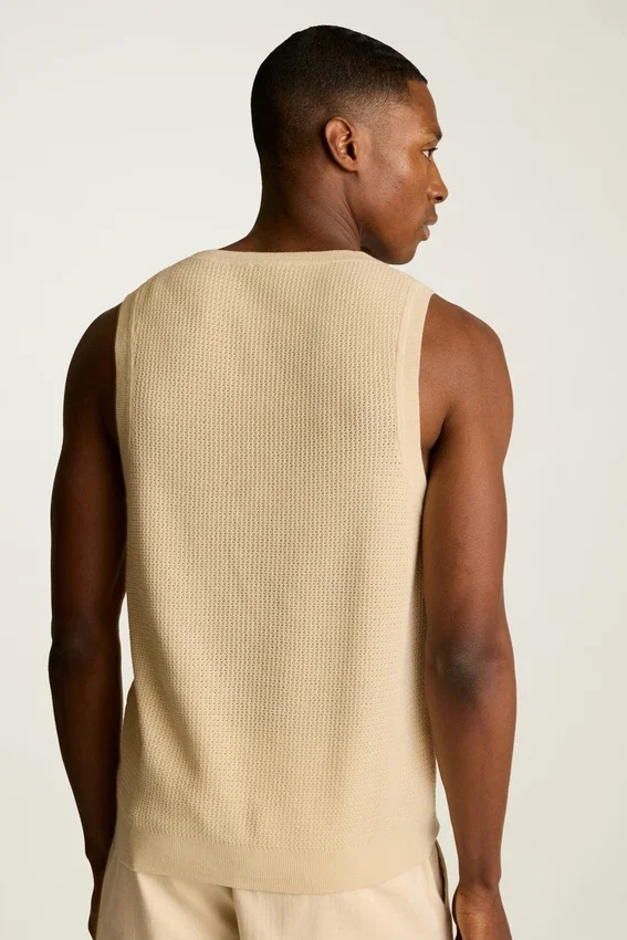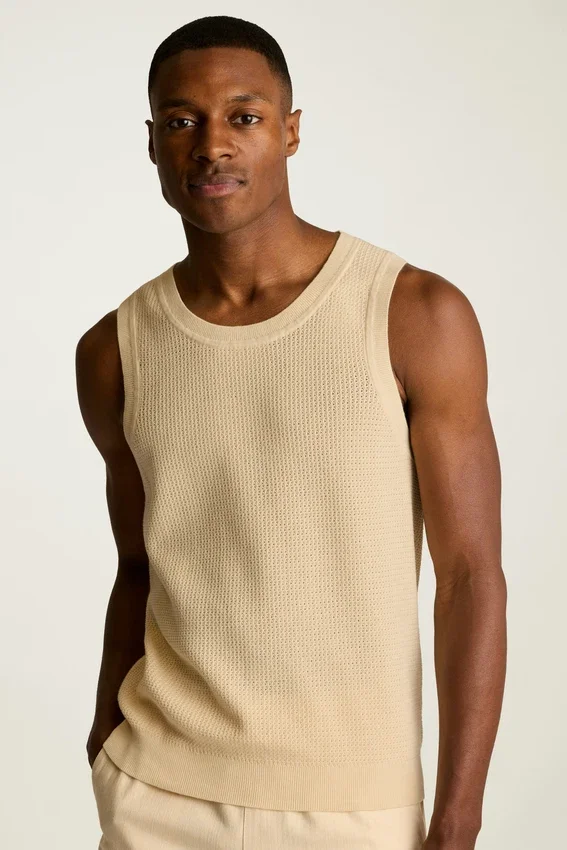 Una camiseta sin mangas de algodón suave y ligera con un diseño de punto abierto, hecha para lucirla.
