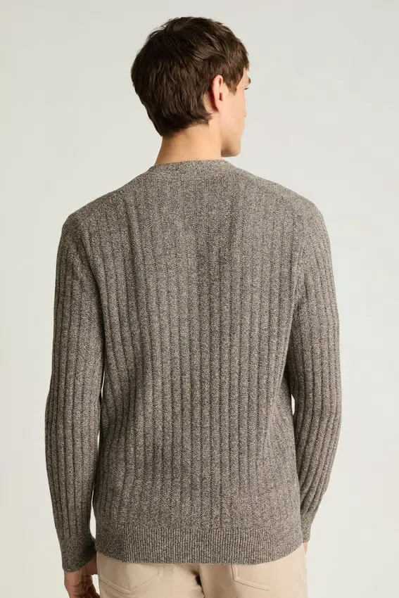 Hilo de mezcla de lino y algodón italiano | El hilo está retorcido con dos colores diferentes para crear un efecto de alto-bajo | Punto de pescador | Bolsillos de parche | Cierre con botones