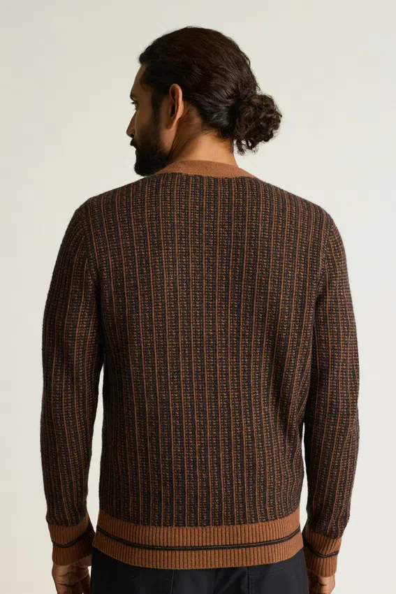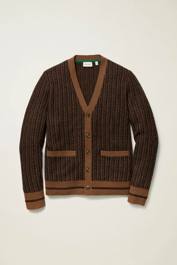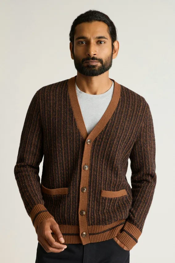 Un cárdigan de peso medio con un diseño vintage sacado directamente de los años 70.