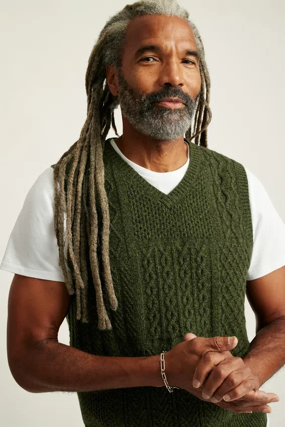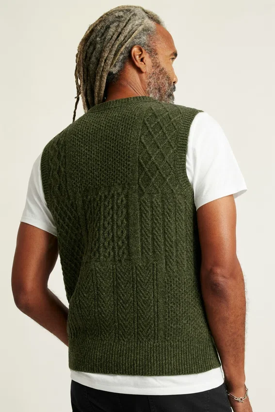 Chaleco de cuello redondo con trenzado de lana