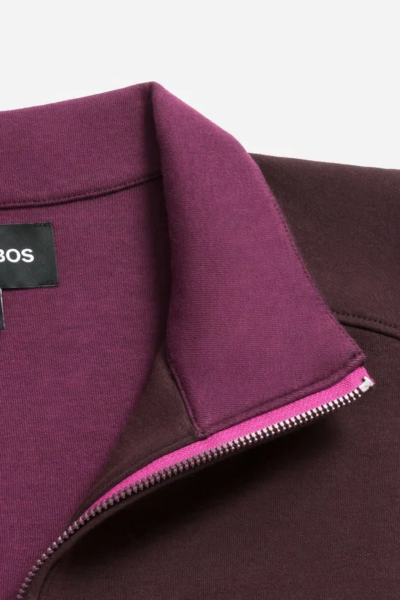 Tejido de doble cara limpio y refinado | Color interior en contraste | Cremallera recubierta de goma con cinta interior en color de contraste | Bolsillos laterales con forro de jersey