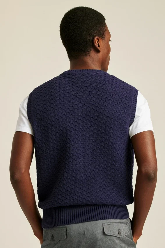 Mezcla de algodón refrescante | Punto trenzado en toda la prenda para un estilo sofisticado e informal | Cuello en V | Ribetes acanalados