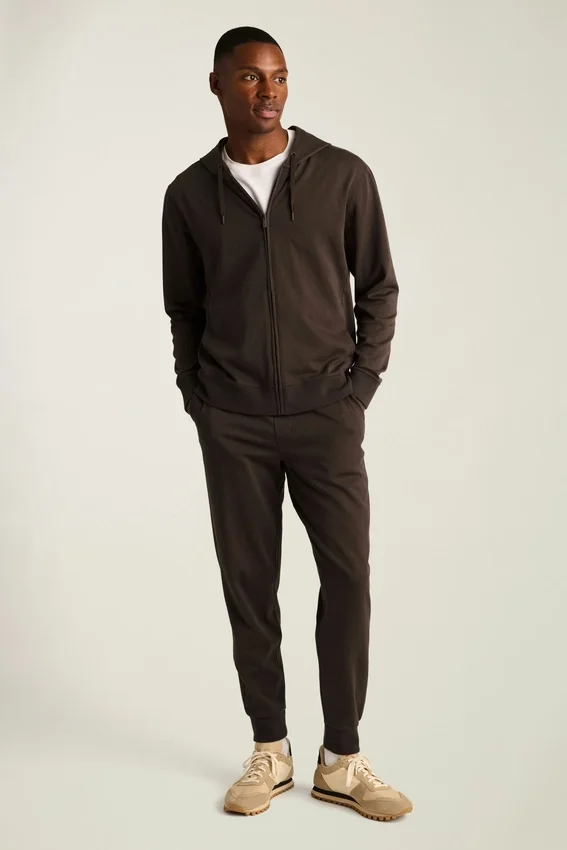 Tejido de peso medio, suave y liso | Absorbe la humedad | Capucha con cordones ajustables | Cierre con cremallera completa | Puños y dobladillo acanalados