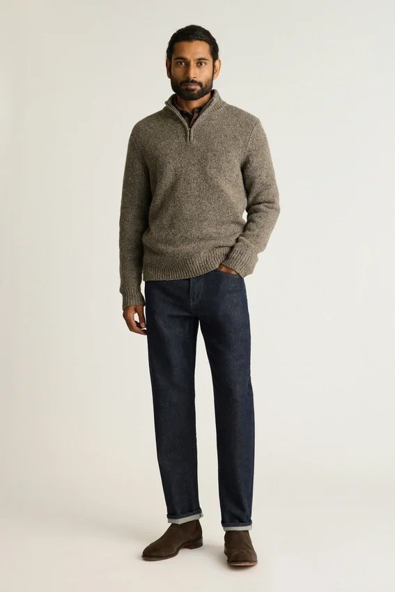 Hilo Donegal de mezcla de merino, suave y cálido | Punto jersey | Peso pesado | Cierre con cremallera en el cuello