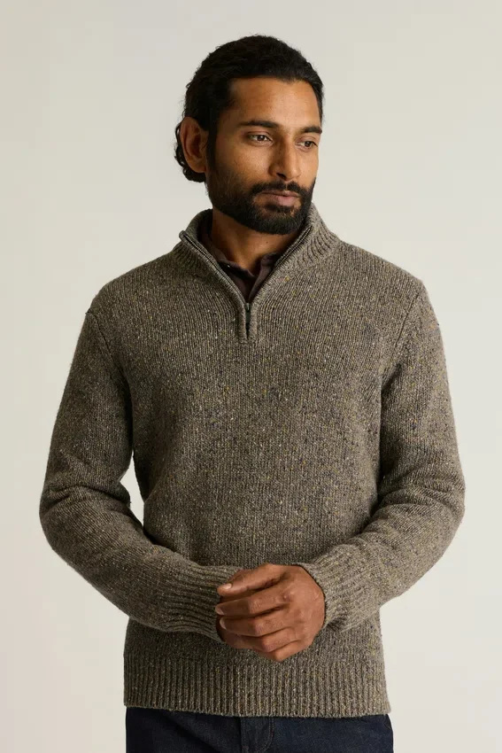 Una mezcla más cálida para llevar en capas en climas fríos. Las motas de Donegal le dan un toque de personalidad extra.