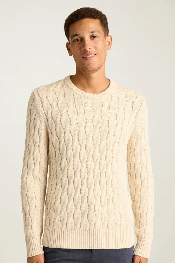 Algodón supersuave tejido en Italia | Patrón de punto trenzado en toda la prenda | Peso grueso y cálido