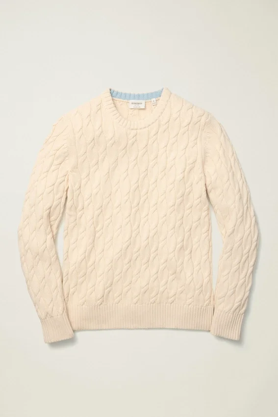 El suéter de punto trenzado de algodón de Bonobos está confeccionado con algodón tejido en Italia y presenta un llamativo punto trenzado. Un suéter grueso diseñado para ofrecer suavidad y calidez en invierno.