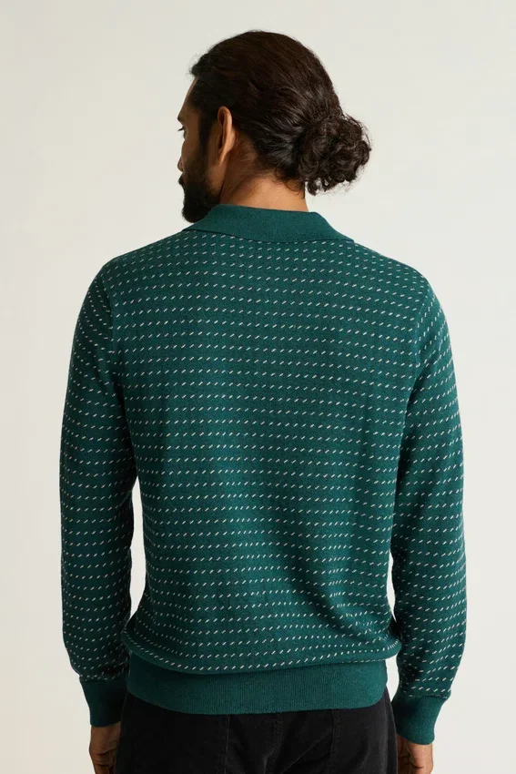 Hilo de algodón y cachemira supersuave | Estampado de lunares multicolores por toda la prenda | Cuello polo con cierre de botones | Ligero