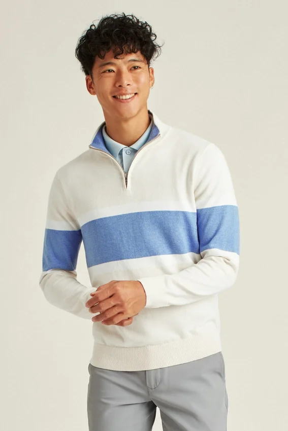 Suéter con media cremallera | Perfecto para usar sobre polos | Tejido de punto tipo suéter | Cierre frontal con cremallera