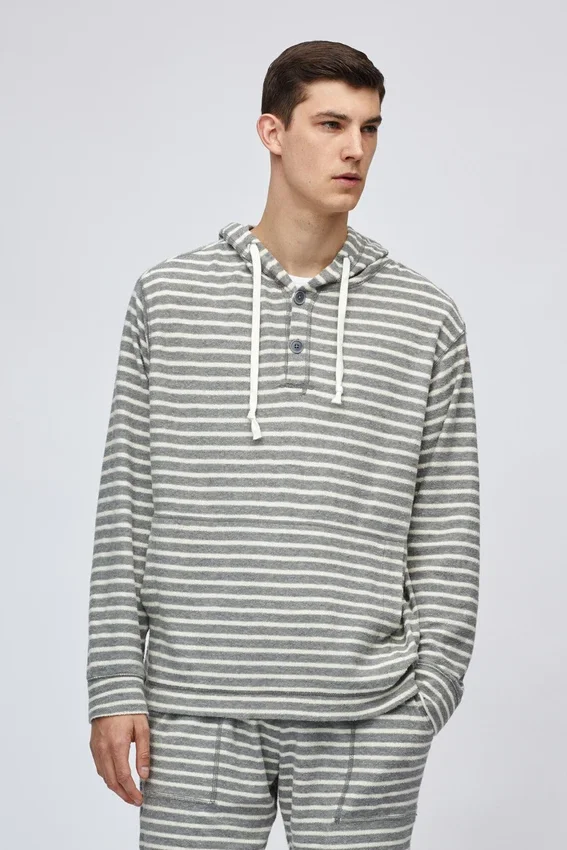 Sudadera con capucha texturizada 100 % algodón con dos botones para abrir la parte superior. Ideal para las tardes en la playa cuando el sol comienza a ponerse. ¡Envío gratis!