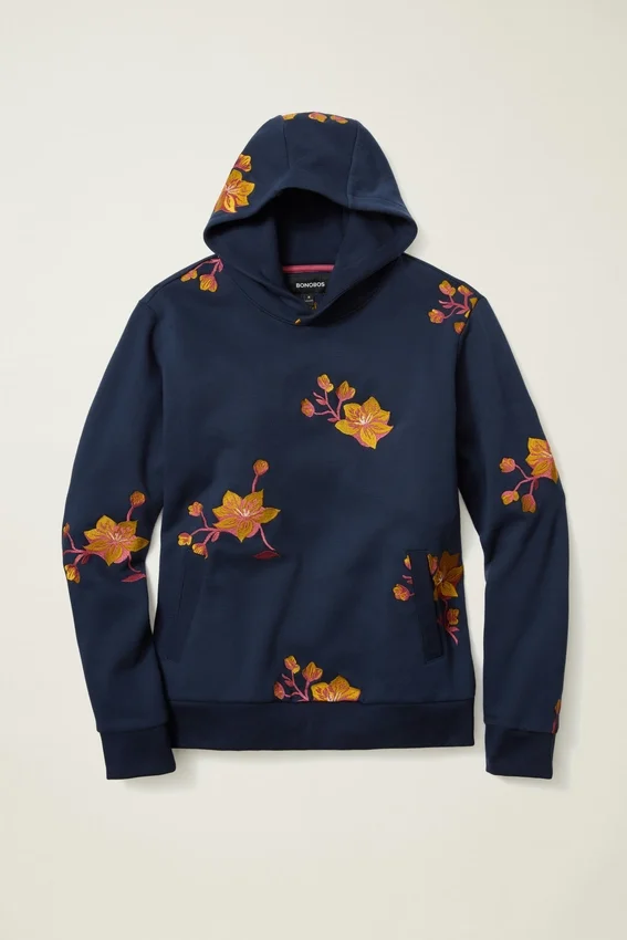 Forro polar supersuave con diseño floral original bordado por toda la prenda