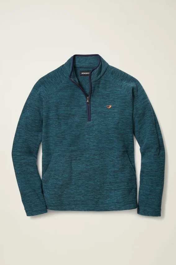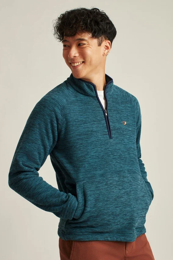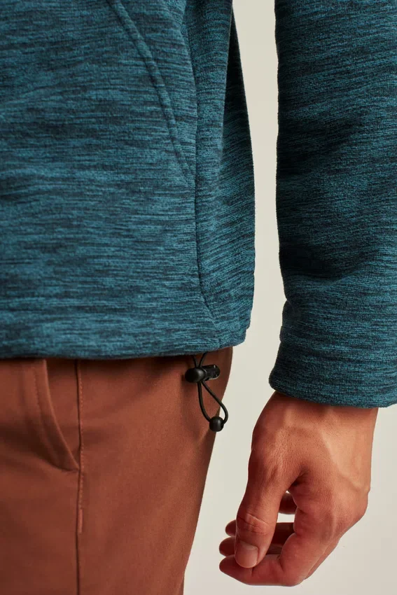 Polar grueso y cómodo con efecto jaspeado | Cremallera en el cuello de embudo | Ribete en contraste | Bolsillo canguro | Cordón elástico en el dobladillo | Diseño original bordado en el pecho