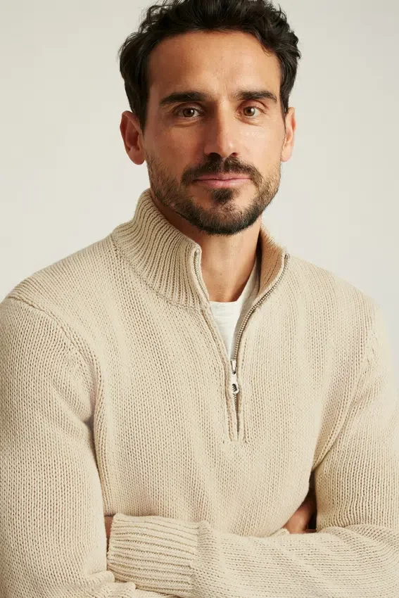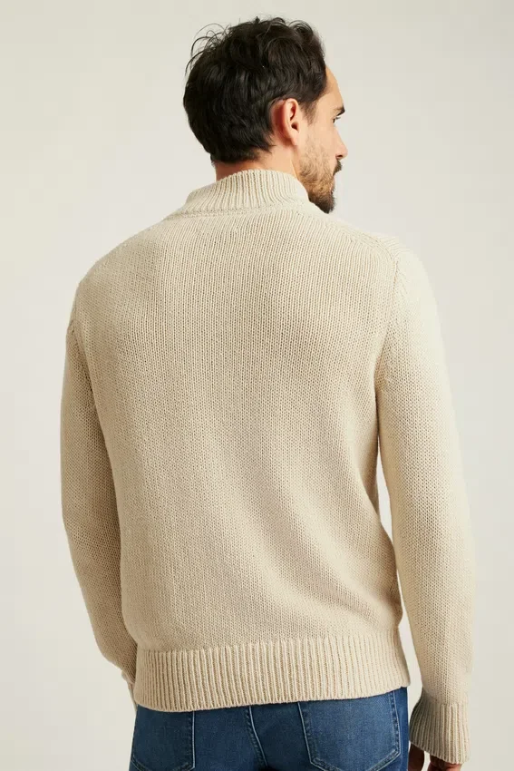 La incorporación del lino hace que este refinado suéter sea perfecto para las capas de entretiempo.