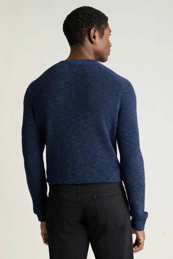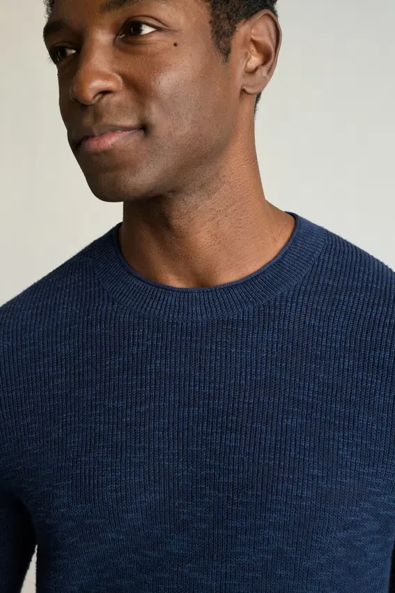 Hilo suave de algodón y lino con textura irregular | Punto de pescador | Cuello redondo con borde enrollado | Ribetes acanalados | Mangas largas | Ligero