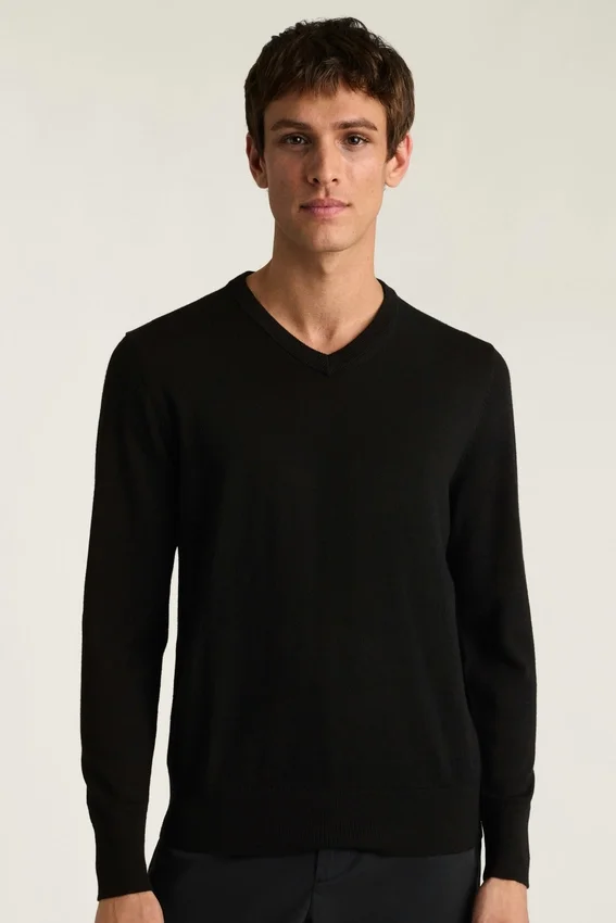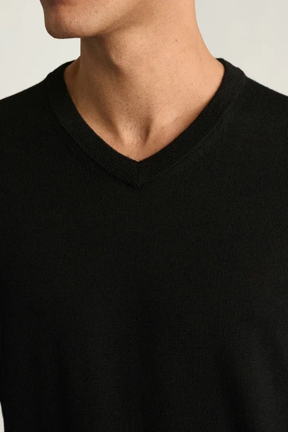 Suéter de cuello en V de lana merino lavable