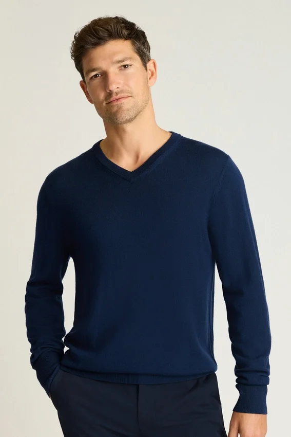 Suéter de cuello en V de lana merino lavable