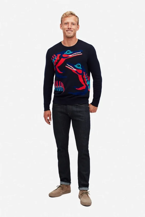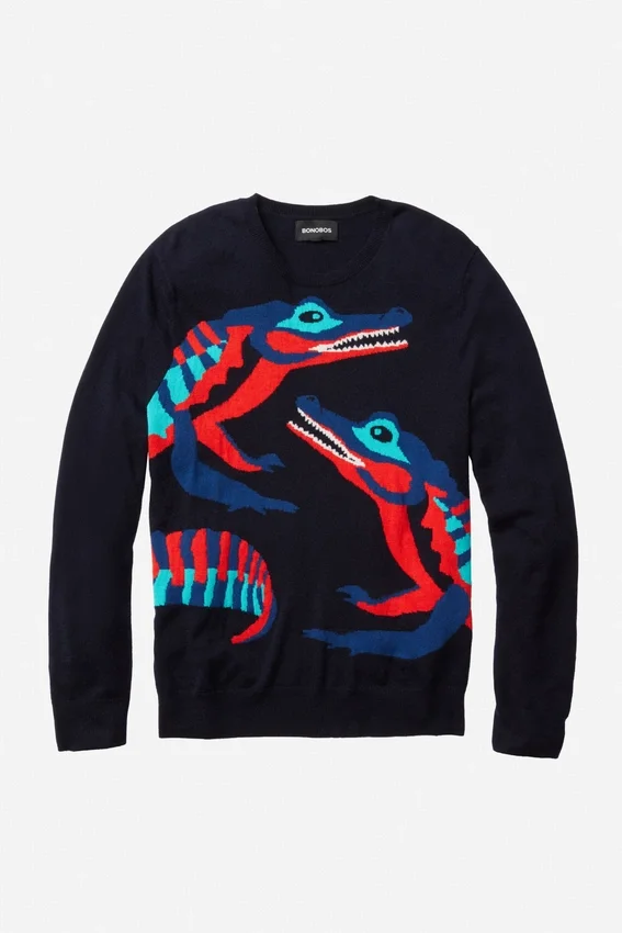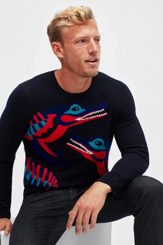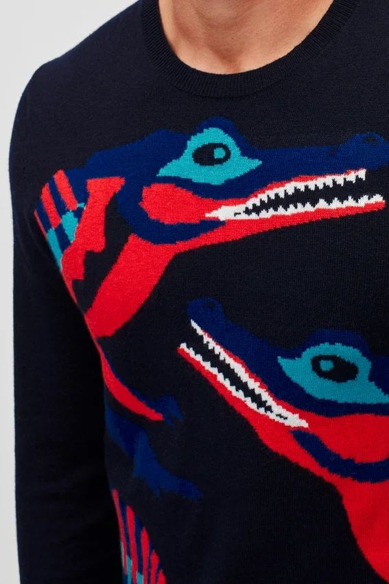 Suéter de cuello redondo con cocodrilo