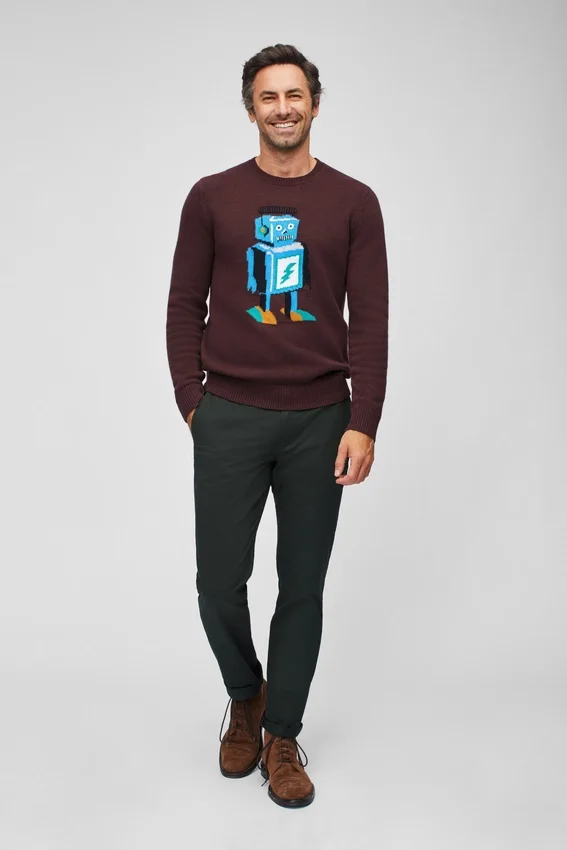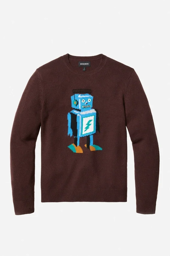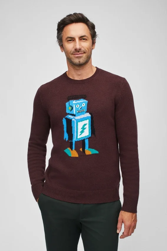 Suéter de cuello redondo con robot