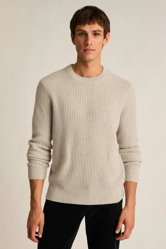 El hilo de cachemira, supersuave y cálido, es lo último en lujo | Hilo de cachemira producido en Italia | Punto waffle en toda la prenda | Peso medio | Contenido de cachemira reciclada para una mayor sostenibilidad