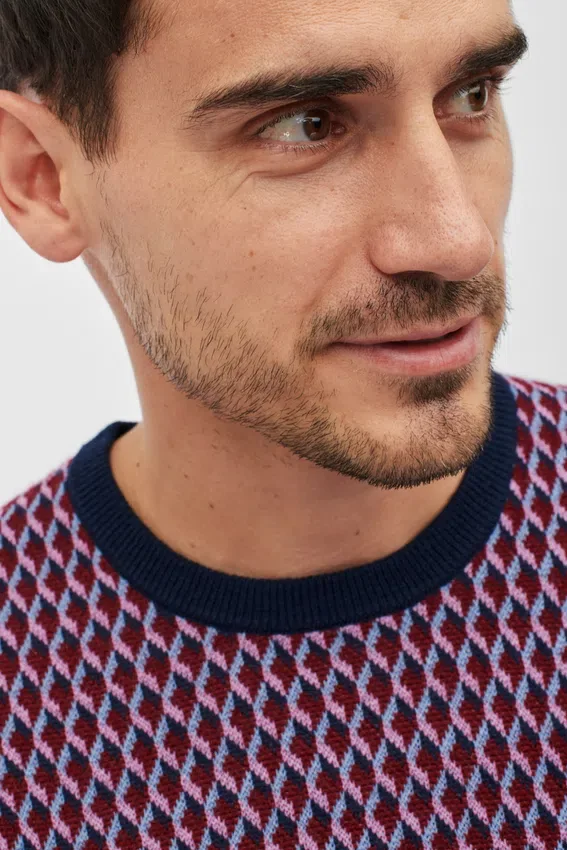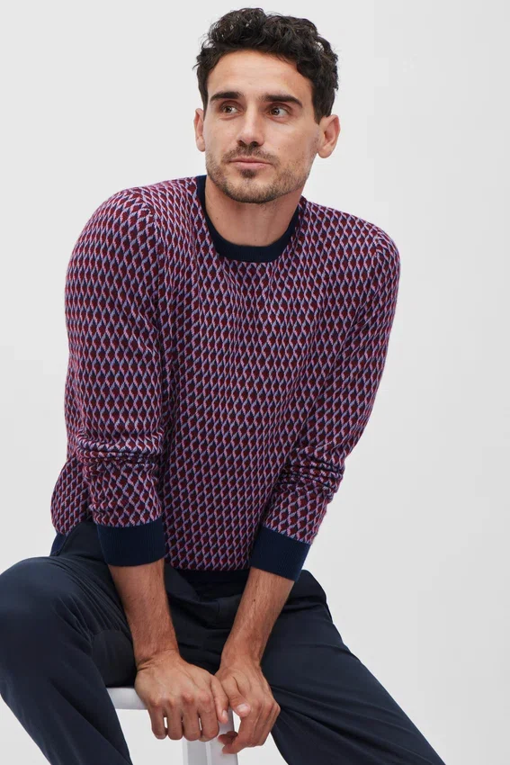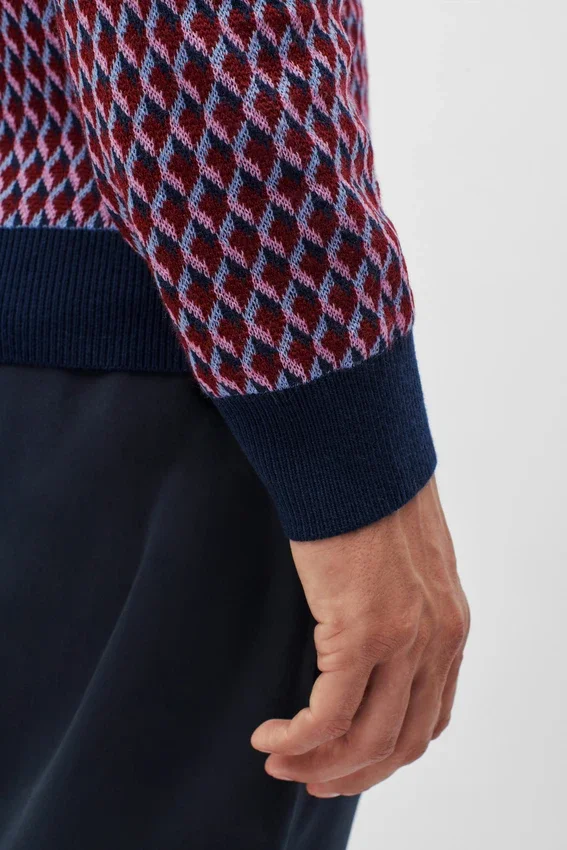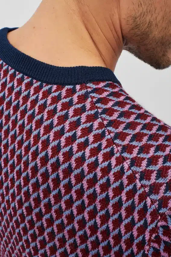 Suave y lujoso | Lana merino con un estampado geométrico multicolor que aporta interés visual
