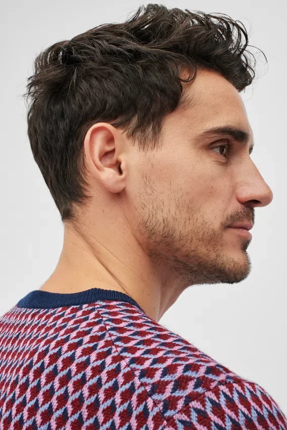 El modelo mide 1,88 m, tiene un contorno de pecho de 102 cm y lleva una talla M.