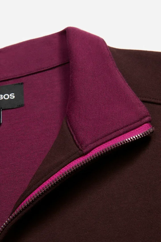 Tejido de doble cara limpio y refinado | Color interior en contraste | Cremallera recubierta de goma con cinta interior en color de contraste | Bolsillos laterales con forro de jersey