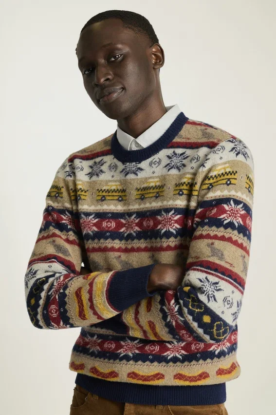 Adopta el estilo de Nueva York con nuestro suéter Fair Isle, con diseños originales y cepillado para una textura y suavidad adicionales. Un suéter de hombre imprescindible para un estilo icónico.