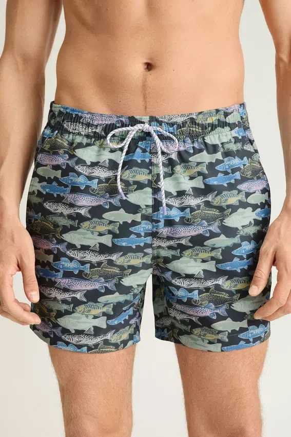 Estos modernos bañadores están fabricados con un 85 % de poliéster reciclado. Disponibles en colores únicos y varias tallas, cuentan con un cordón exterior, forro interior de malla y un bolsillo trasero.