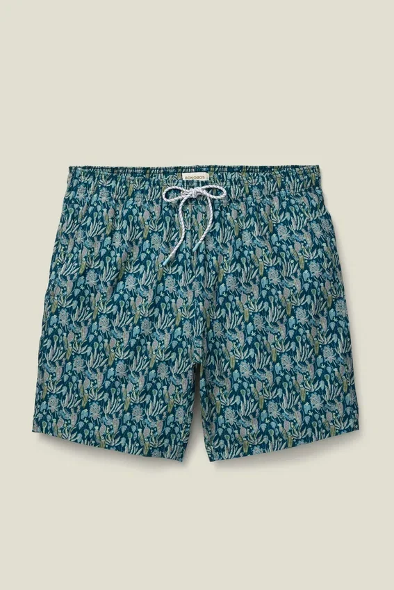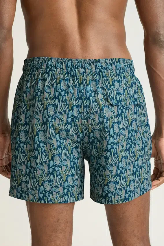 Estos modernos bañadores están fabricados con un 85 % de poliéster reciclado. Disponibles en colores únicos y varias tallas, cuentan con un cordón exterior, forro interior de malla y un bolsillo trasero.