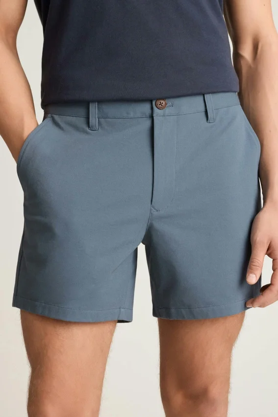 El mismo tejido elástico en 4 direcciones y sin planchar de nuestros pantalones chino n.º 1, en un tamaño más pequeño para crear los pantalones cortos chino perfectos para hombre. Compra pantalones cortos chino ligeros para hombre.