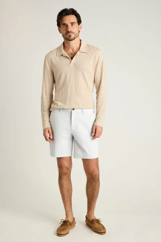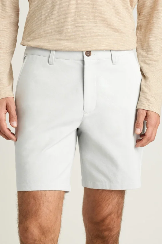 El mismo tejido elástico en 4 direcciones y sin planchar de nuestros pantalones chino n.º 1, en un tamaño más pequeño para crear los pantalones cortos chino perfectos para hombre. Compra pantalones cortos chino ligeros para hombre.
