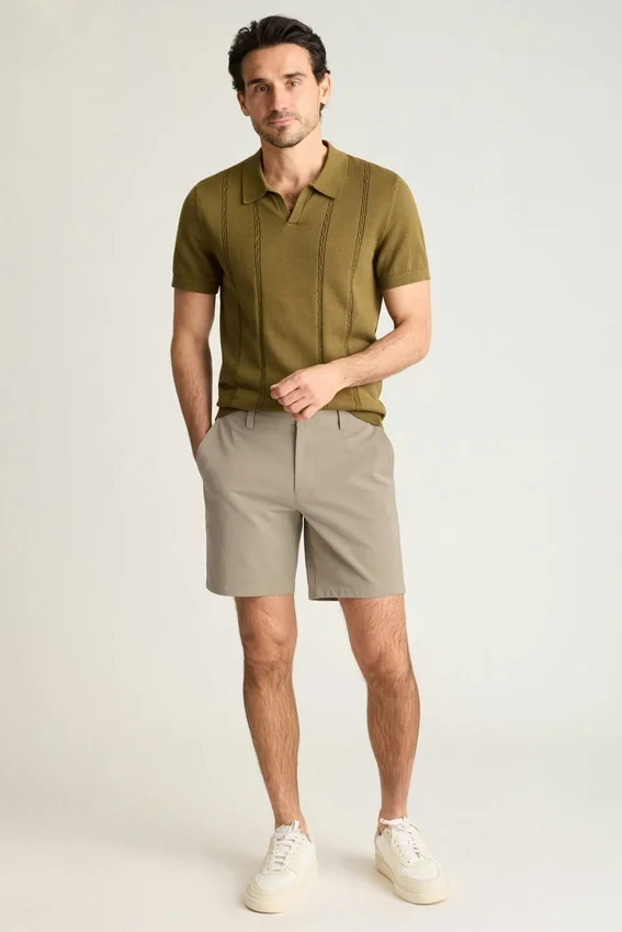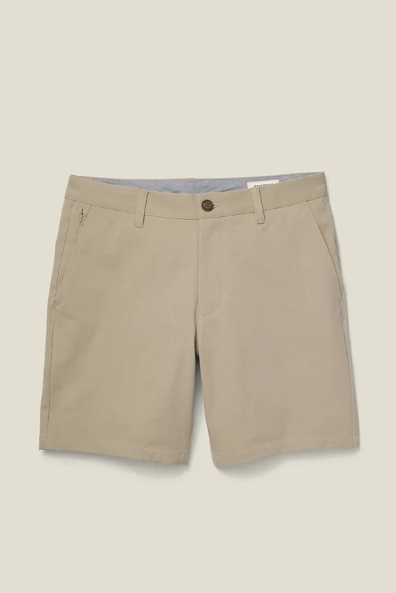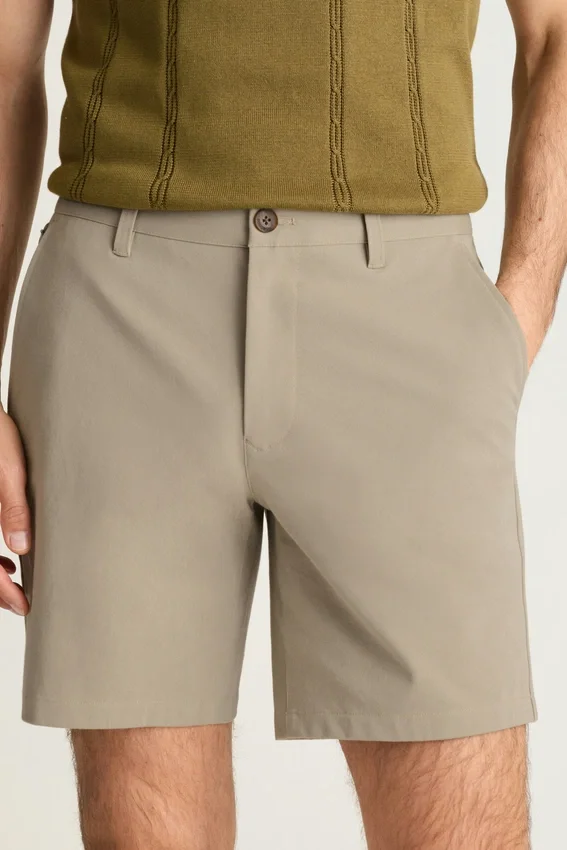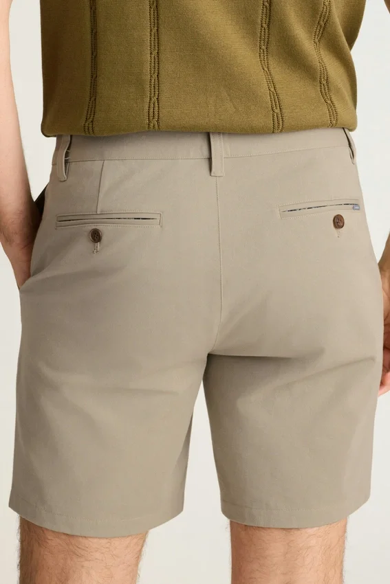 El mismo tejido elástico en 4 direcciones y sin planchar de nuestros pantalones chino n.º 1, en un tamaño más pequeño para crear los pantalones cortos chino perfectos para hombre. Compra pantalones cortos chino ligeros para hombre.