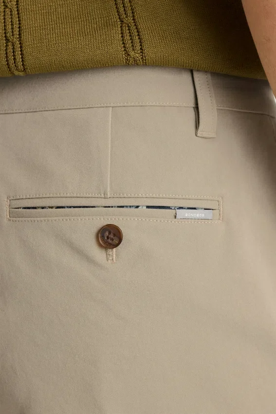 Curved Waistband característica | Forro de bolsillo en contraste | Cierre con botones de imitación de cuerno con el logotipo | Botones en los bolsillos traseros | Absorbe la humedad