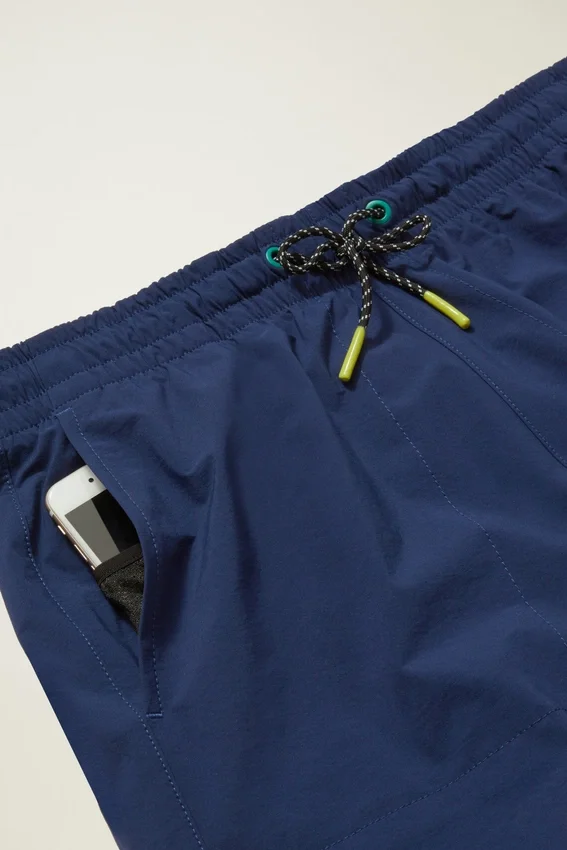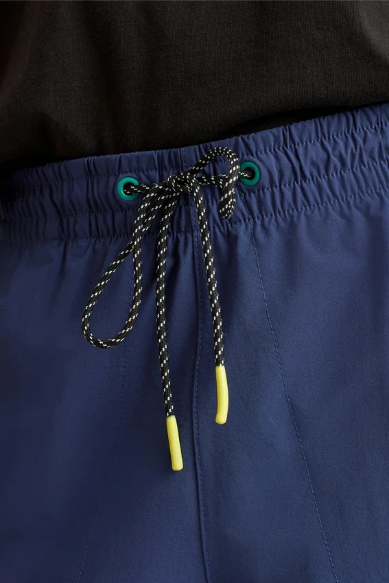 Cintura elástica | Cordón con ribete en contraste y ojales | Bolsillo trasero con tirador de cremallera en contraste | Bolsillos de malla | Bolsillo oculto y seguro para dispositivos multimedia