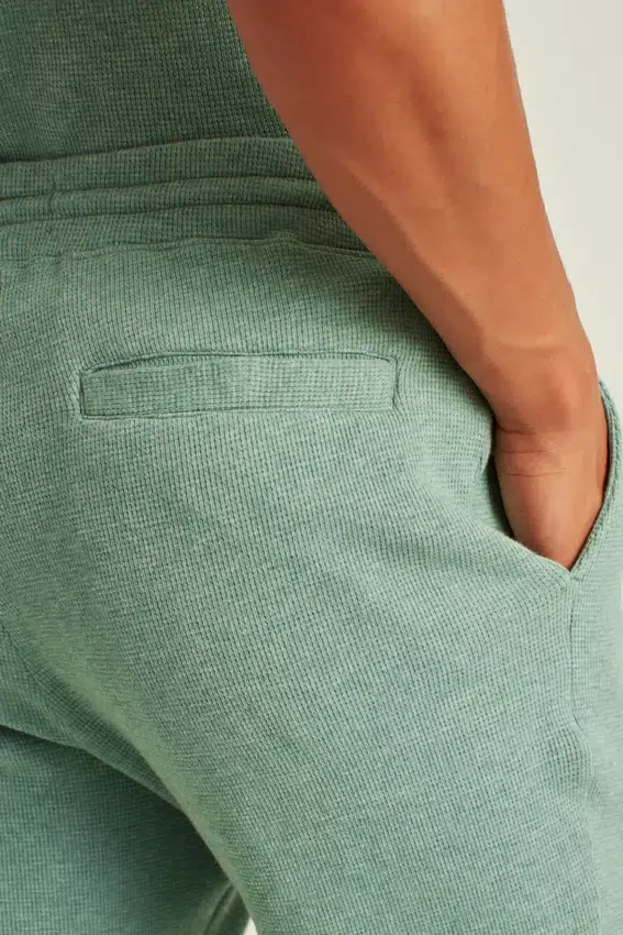 Tejido tipo waffle con textura | Cintura elástica | Dos bolsillos delanteros, un bolsillo trasero con ribete