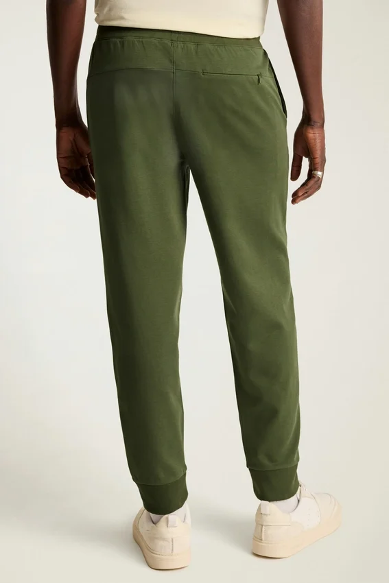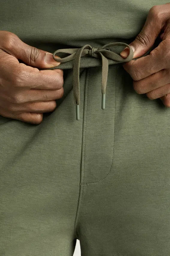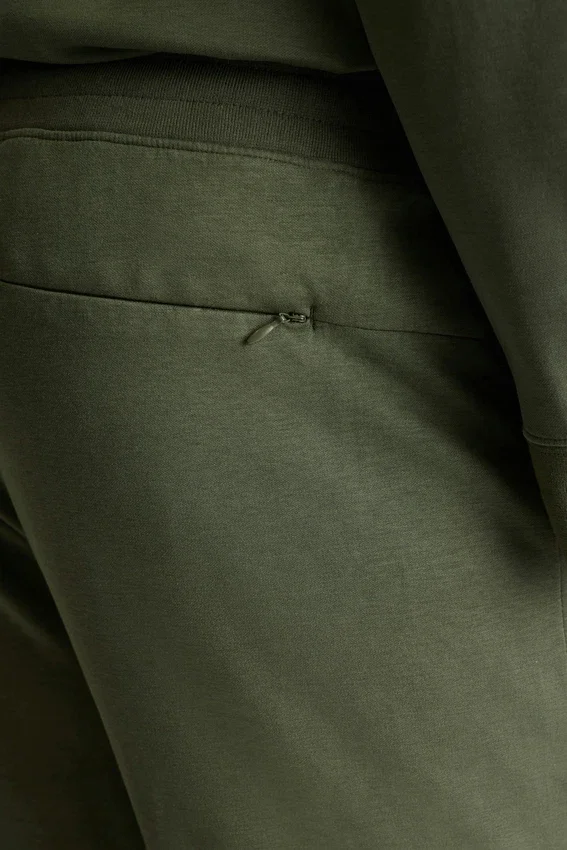 Tejido de peso medio, suave y liso | Absorbe la humedad | Cintura elástica con cordón ajustable | Bolsillos laterales | Bolsillo trasero con cremallera | Puños acanalados