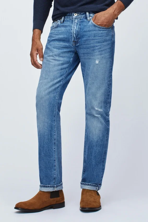 Vaqueros clásicos de estilo selvage confeccionados en 100 % algodón. Fabricados en EE. UU. con tejidos importados de las mejores fábricas. Disponibles en Slim Fit con una variedad de largos. ¡Envío gratuito!